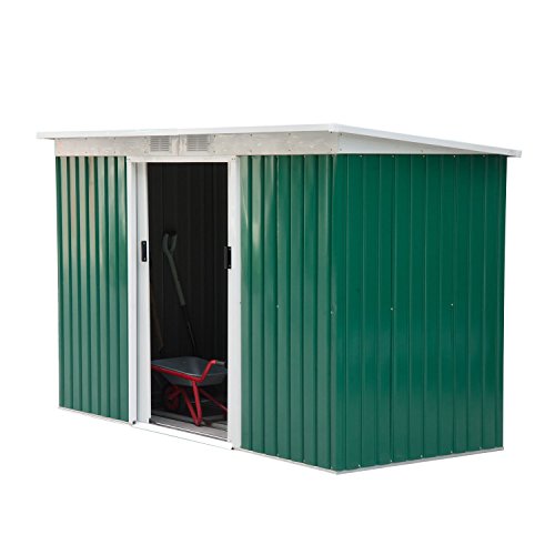 - Product Name: Outsunny 9' x 4' Outdoor Metal Garden Storage Shed - Green/White